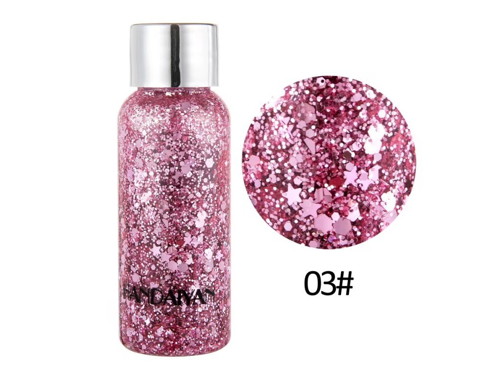 Premeňte sa na hviezdu večera s naším prémiovým glitrovým gélom, ktorý zaručí, že budete žiariť celý deň aj noc. Na rozdiel od obyčajných glitrov, ktoré sa rýchlo zosypú, tento špeciálne vyvinutý gél udrží každý trblietavý detail na svojom mieste až 12+ hodín.
